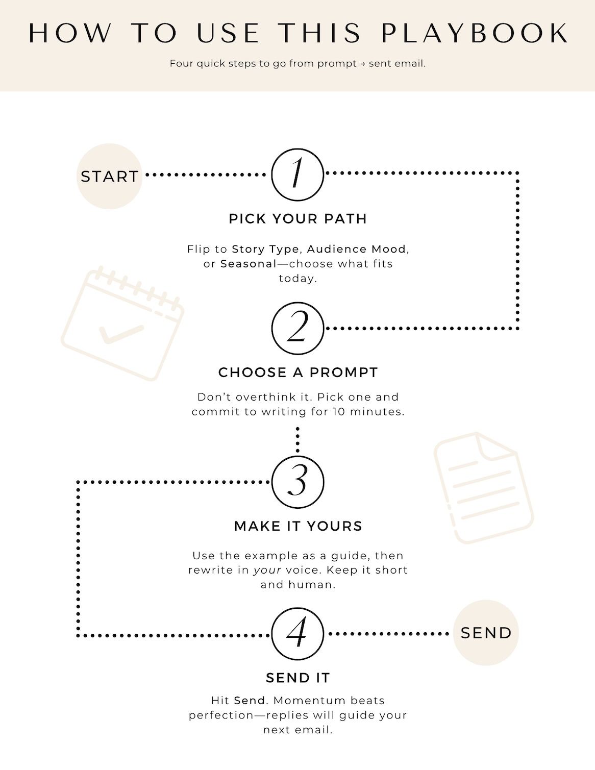 Write emails your people actually want to open, read, and reply to without staring at a blinking cursor. The Email Engagement Playbook for Creators gives you 30 plug-and-play prompts with real examples so you can show up consistently, sell with personality, and keep your list warm in minutes (not hours); pick a prompt, tweak the example to your voice, and hit send. Momentum beats perfection every time!